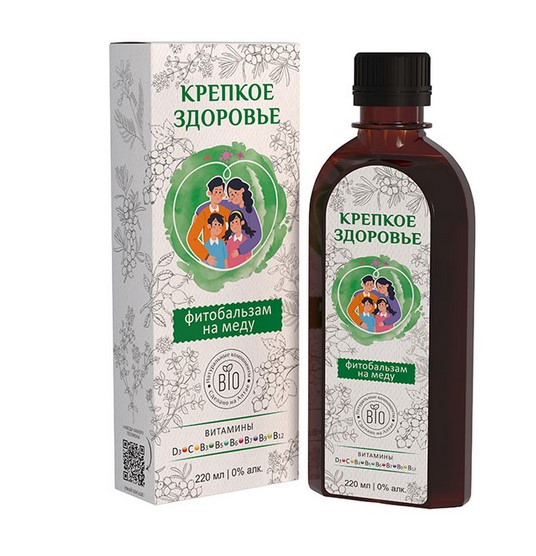 Активные компоненты*: плоды шиповника, листья чёрной смородины, душица, зверобой, красный корень, ягоды облепихи, мёд, витамины D3, C, В3(PP), В5, В6, В7(Н), В9, В12.