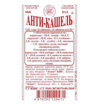 Состав: солодка, пармелия, иссоп, мать-и-мачеха,шалфей, чабрец, имбирь, кислота аскорбиновая.