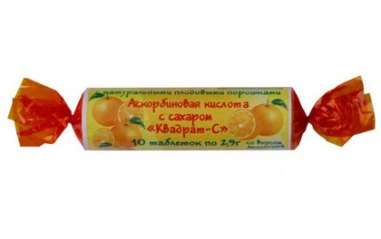 активное вещество –0,05 г аскорбиновой кислоты;